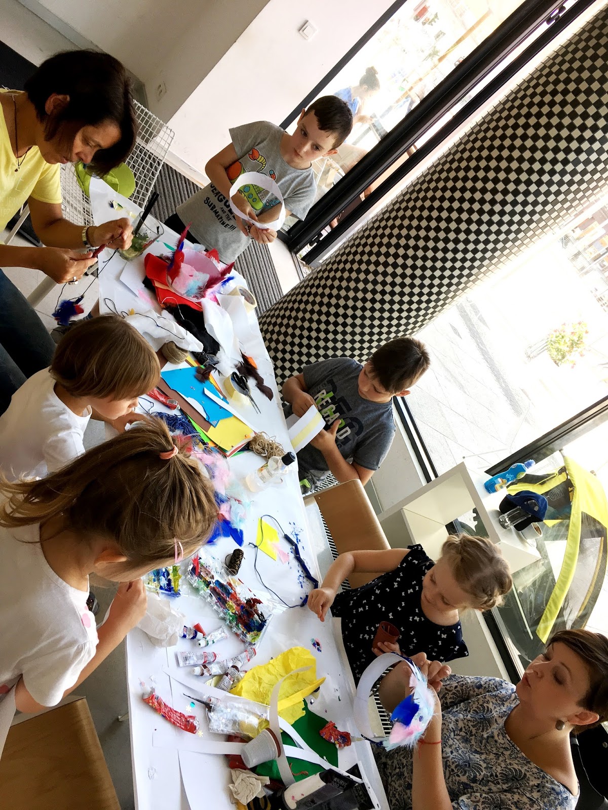 Ostatni dzień Kolektyw Pokolenie odbył się pod znakiem ozdób - opasek/pióropuszy, bransolet, wisiorków. Wykorzystaliśmy kredki, papiery, kolorowe piórka, filc, kolorowy papier, cekiny i wiele dodatków.